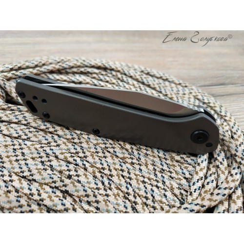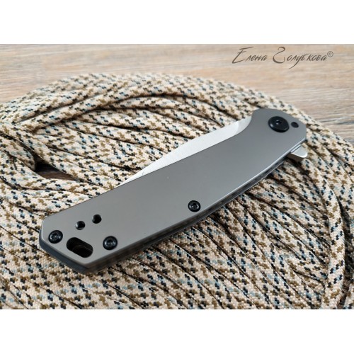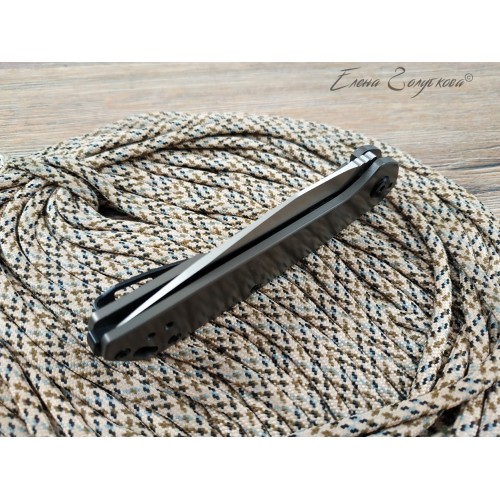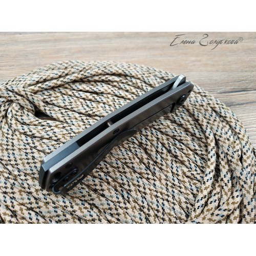 Рукоять собрана на гладких стальных лайнерах с серым защитным покрытием, бонке и коротком бэкспейсере (backspaser).