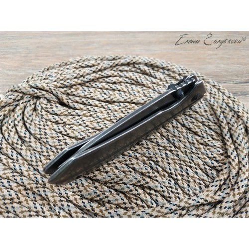 Установлена стальная черная клипса средней жесткости для ношения ножа на кармане.