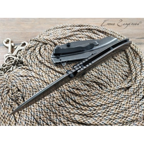Высокие вогнутые спуски обеспечивают неплохой рез, благодаря острому кончику клинка нож обладает высокой пробивной способностью. Сталь клинка – 4Cr13MoV недорогая нержавеющая сталь, имеет твердость до 58 HRC, хорошо противостоит коррозии.
