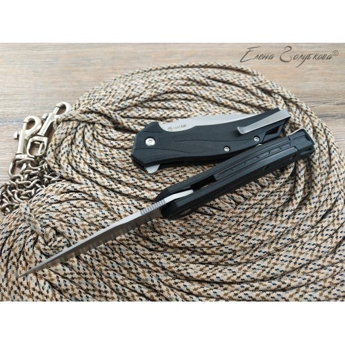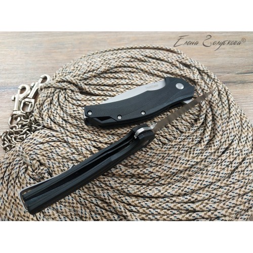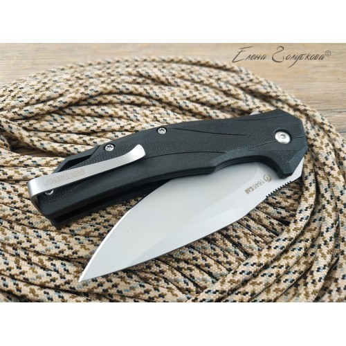 Высокие вогнутые спуски обеспечивают отличный рез, благодаря ниспадающей линии обуха и острому кончику клинка нож обладает высокой пробивной способностью.