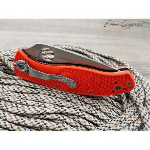 Рукоять выполнена из термопластик FRN. Отверстие для темляка прикрыто алюминиевой трубкой.