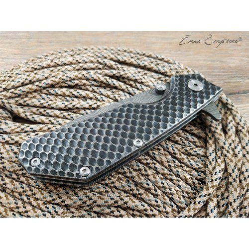 Рукоять собрана на стальных лайнерах с накладками из нержавеющей стали ячеистой структуры. Рукоять заметно расширяется в сторону тыльной части.