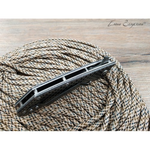 Очень тяжелый для своих размеров (216 г) нож-флиппер со стальной рукоятью.