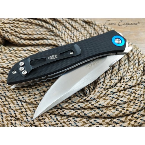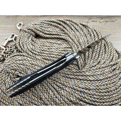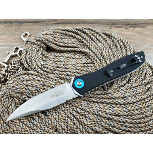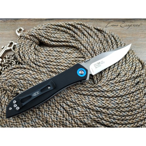 Клинок выполнен со скосом обуха (Clip-Point), с высокими вогнутыми спусками выполнен из нержавеющей ножевой стали.