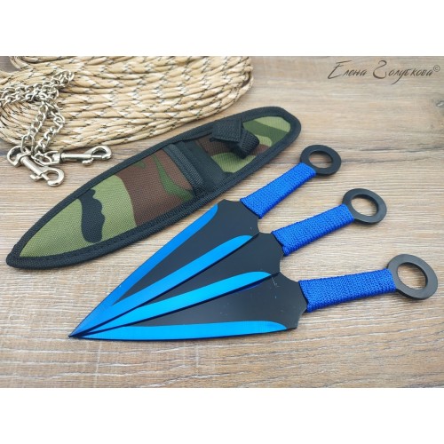 В комплек входят: три ножа стрелообразной формы, чехол из нейлона (кордуры).