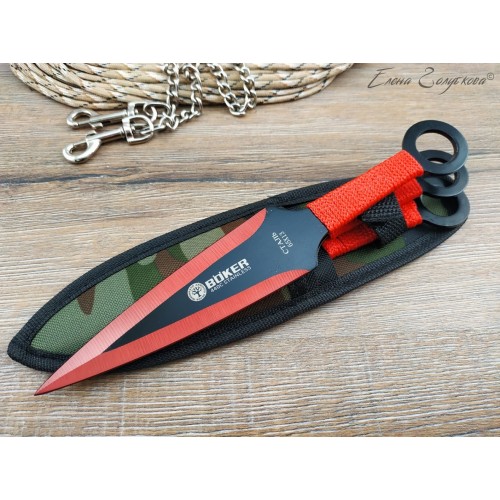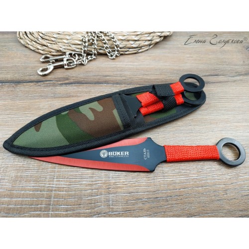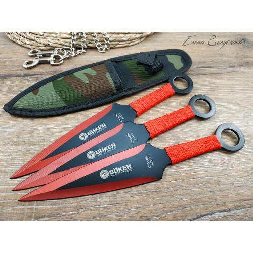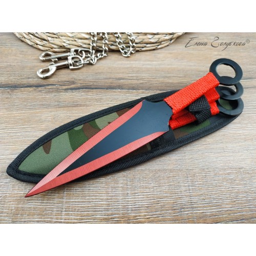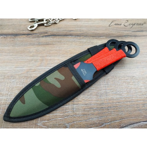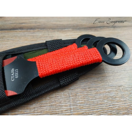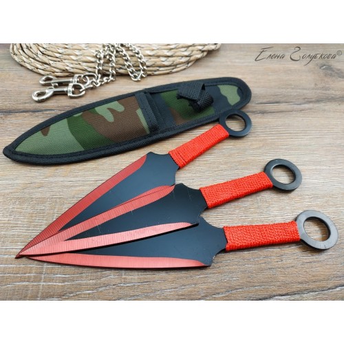 В комплек входят: три ножа стрелообразной формы, чехол из нейлона (кордуры).