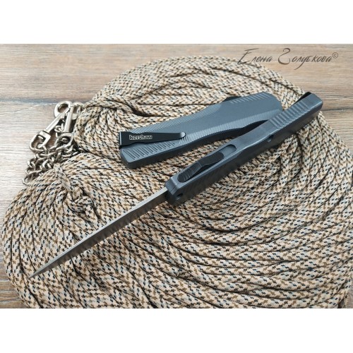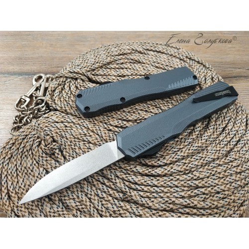 Открывается и закрывается нож автоматически сдвигом ползунковой кнопки, клинок вылетает из фронтальной части рукояти с резким щелчком.