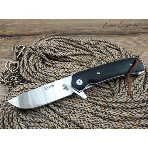 Нож Крот - универсальный складной нож. Широкий клинок с высокими спусками сделан из прочной нержавеющей стали. Он хорошо держит заточку, эффективно сопротивляется коррозии. В рукояти скрывается надежный замок liner-lock, страховка от самопроизвольного закрытия клинка. Нож легко открывается одной рукой благодаря специальному выступу флипперу. В открытом виде он также выполняет роль одностороннего упора для защиты пальцев. Нож Крот идеально подойдет на роль городского ножа ежедневного ношения.