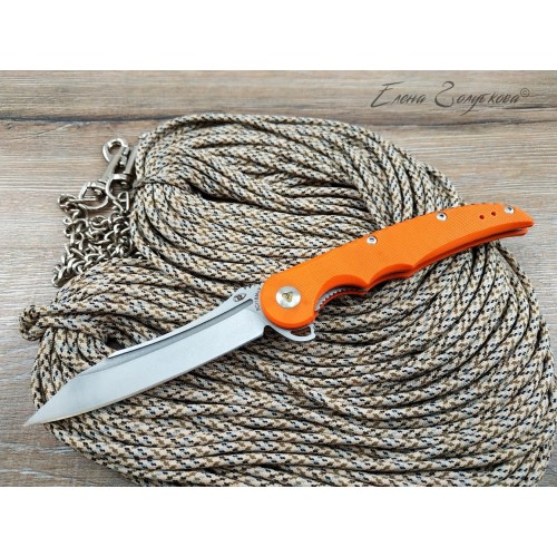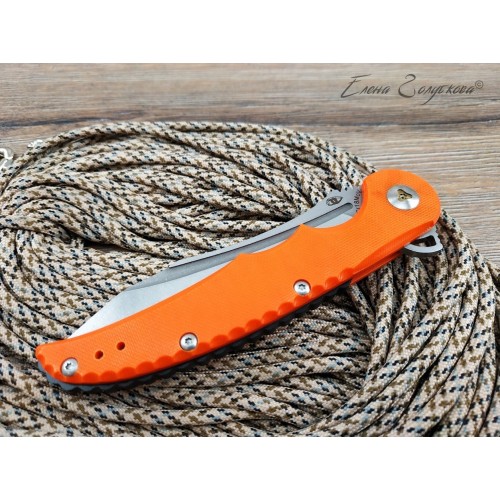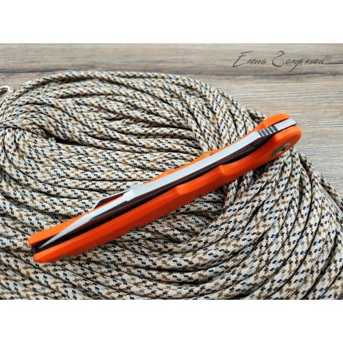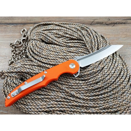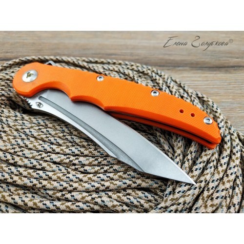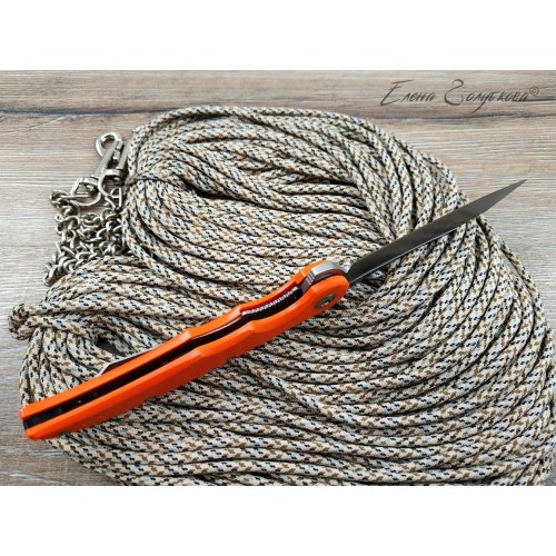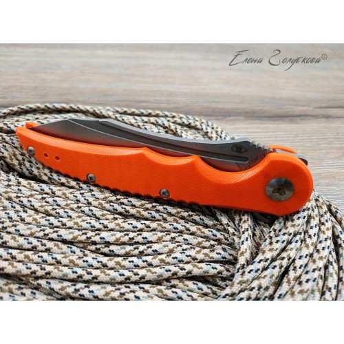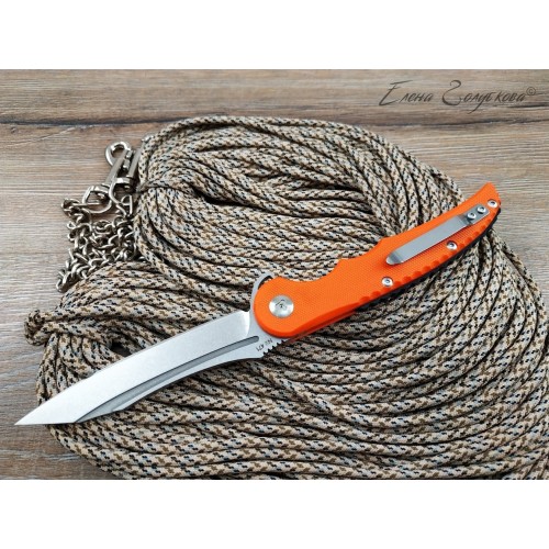 Нож легко разложить одной рукой методом флиппинга: образованный полотном клинка «плавник» слегка выходит за границу рукояти и используется как рычаг, а в разложенном состоянии образует надежный упор.