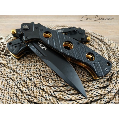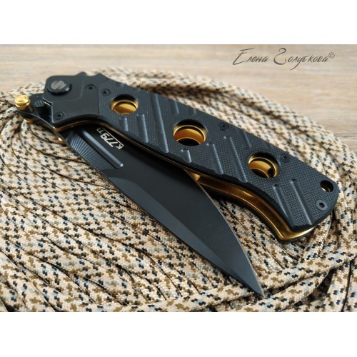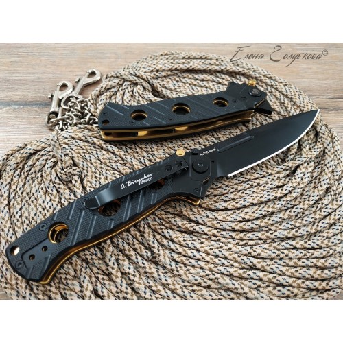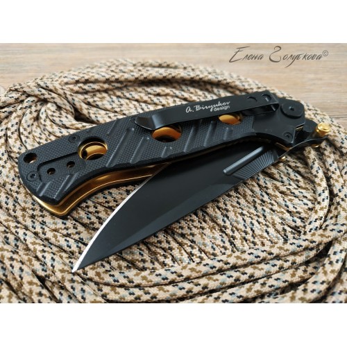 Нож VN Pro Tiger C сталь AUS8 K779T1 - складной нож. Его клинок традиционной, проверенной формы весьма эффективен и обладает специальным защитным покрытием. Рукоять из высокопрочного материала G10 скрывает в себе простой и надёжный замок Liner-lock. Благодаря продуманной комбинации шпенька и флиппера Тигр легко открывается одной рукой несколькими способами. Дизайн ножа разработан А. Бирюковым.