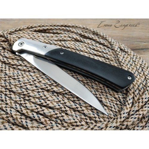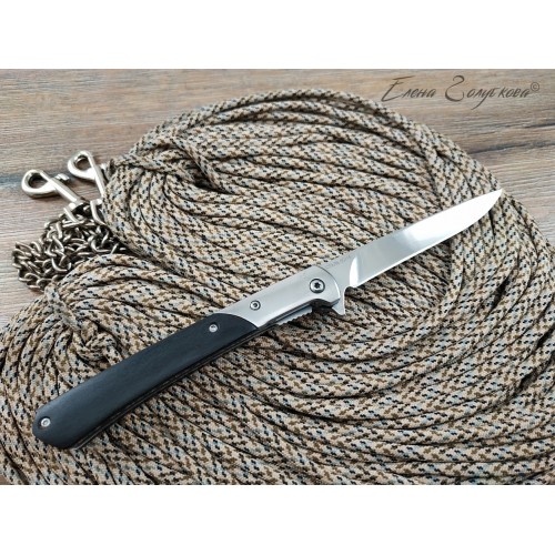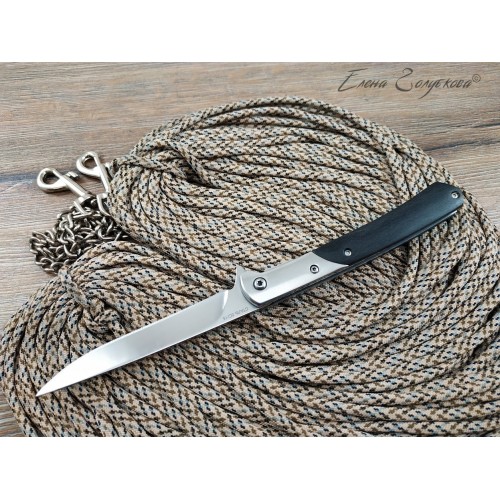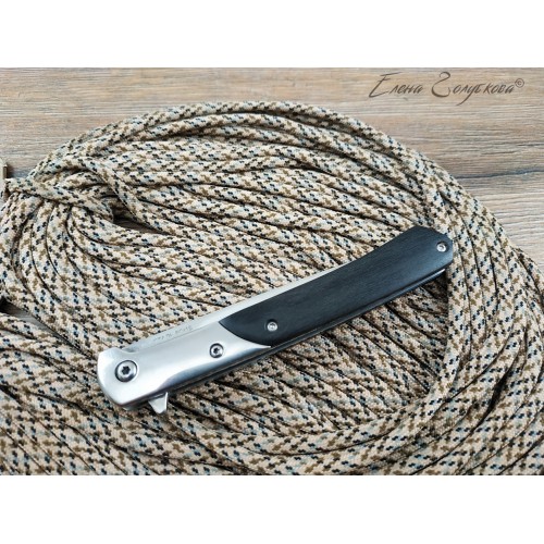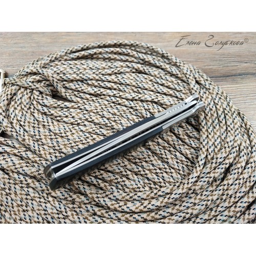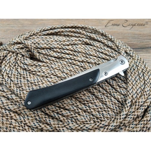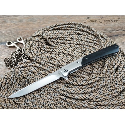 Нож складной сталь 5Cr15MoV B5210, прямой силуэт, длинный и узкий клинок, не броская, но изящная отделка рукояти, удобная клипса. Клинок, типа "normal-blade", с вогнутыми спусками. Благодаря осевому узлу, собранному с использованием подшипников, нож готов к работе буквально за секунду. При этом выступ на пяте клинка, предназначенный для открывания ножа, образует выраженный подпальцевый упор. Благодаря этому упору прямая рукоять надежно сидит в руке.