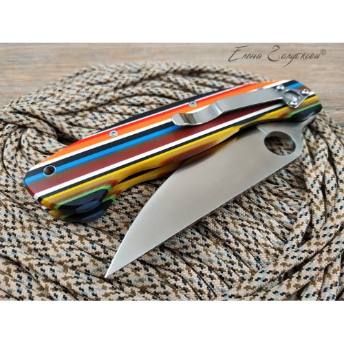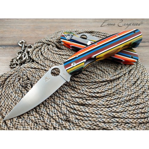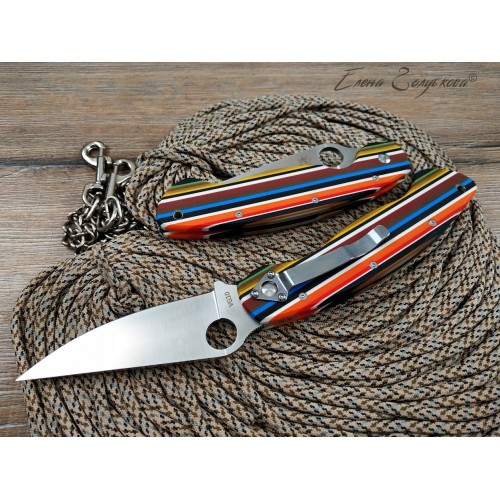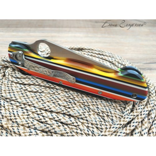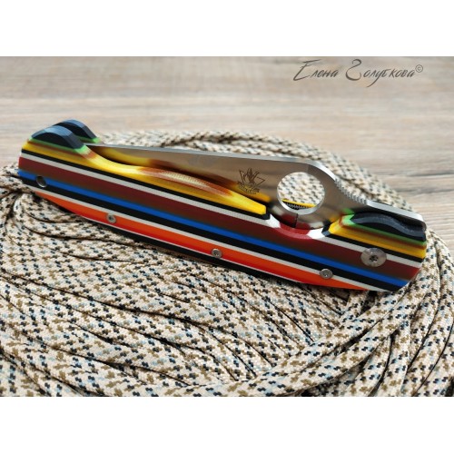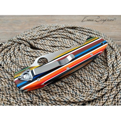 Крупное отверстие, расположенное ближе к обуху, позволяет легко раскладывать нож одной рукой, а сам клинок образует с обеих сторон надежные упоры, которые не позволят соскользнуть на лезвие. Надежность и удобство удержания увеличиваются благодаря эргономичной форме рукояти, подогнанной под изгиб ладони и имеющей выемки под пальцы. На рукояти есть клипса для крепления к элементам одежды или снаряжения.