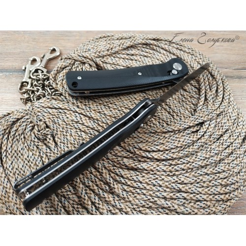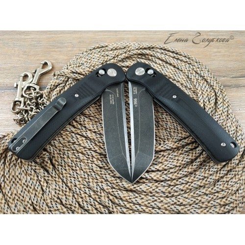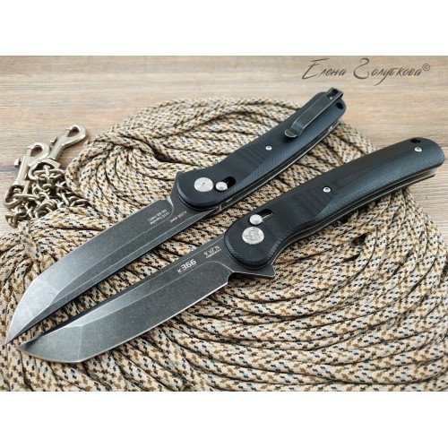 Складной нож с фиксатором типа axis-lock. Клинок изготовлен из высококачественной легированной стали и имеет форму типа american tanto. Рукоять ножа разборная, сделана на основе стальных лайнеров с установленными накладками из композита G10. Благодаря подшипникам и выступу на пяте клинка, так называемому «флипперу», нож открывается движением пальца. Для удобства использования на ноже имеется широкое темлячное отверстие и надёжная клипса.