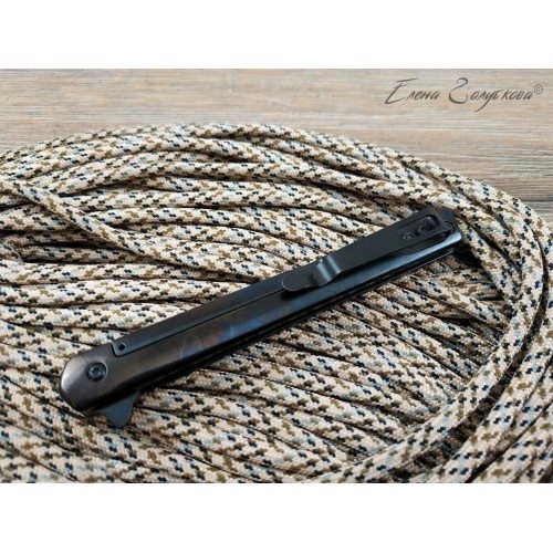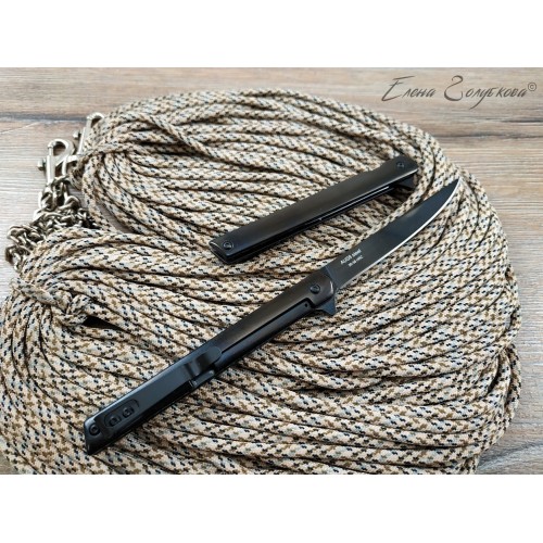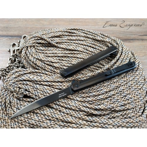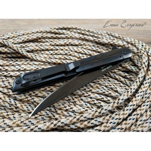 Новый нож от компании VN Pro происходит от короткого японского клинка кайкен, отличительными особенностями которого являются тонкий профиль, компактность, а также непременная острота. Клинок ножа изготовлен из нержавеющей стали AUS8, которая сочетает в себе стойкость к коррозии, высокую твердость и пластичность. Высокие, от обуха, спуски дают клинку прекрасные режущие свойства. Удобство открывания обеспечивает выступ на пяте клинка –флиппер, который позволяет открыть нож легким движением пальца. В раскрытом состоянии флиппер образует развитый подпальцевый упор, а замок типа frame-lock обеспечивает надежную защиту от складывания. Рукоять ножа полностью выполнена из стали, имеет классический прямой силуэт с небольшой подпальцевой выемкой. Для удобства ношения нож оснащен удобной клипсой.