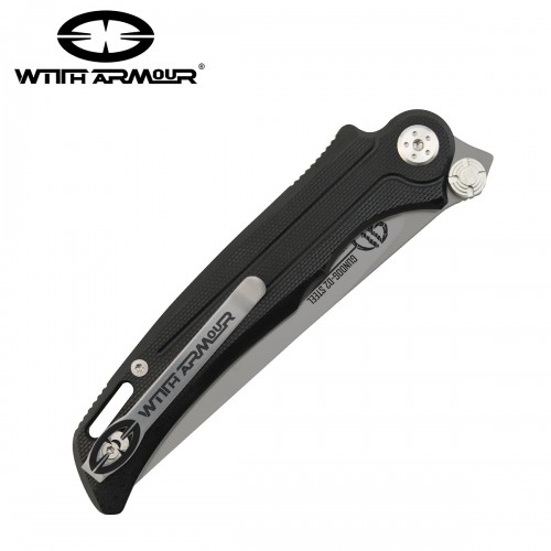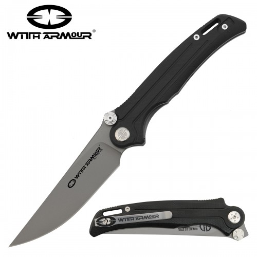 Нож Gundog от фирмы Wtiht Armor является представителем семейства городских, универсальных EDC (Every Day Carry) ножей или ножей на каждый день. Клинок типа California clip из высококачественной инструментальной стали D2, с опущенной к острию и легким прогибом линии обуха, делает этот нож удобным как для реза, так и для колющих ударов. Для удобства извлечения клинок оснащен массивным двусторонним шпеньком. Рукоять из завовевавшего популярность в ножевом мире композита G10, с прочным замком Liner-Llock удобно и надежно сидит в руке. Для уменьшения коррозии и бликов на клинок и рукоять нанесено защитно- декоративное покрытие на основе титана серого цвета. Нож поставляется в удобной подарочной упаковке.
