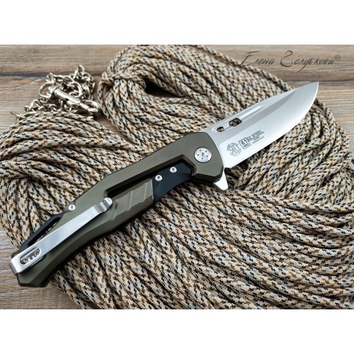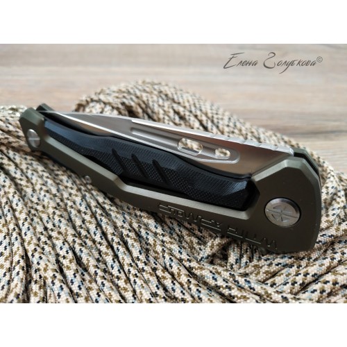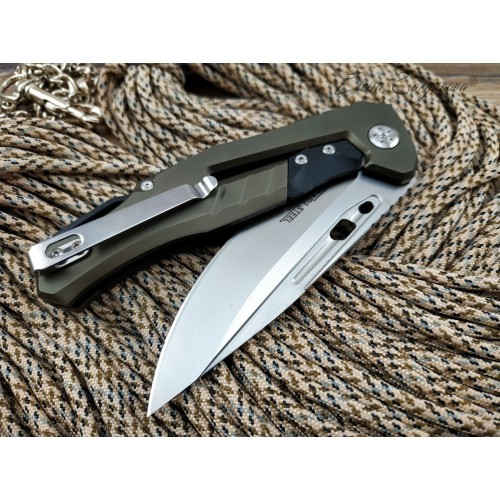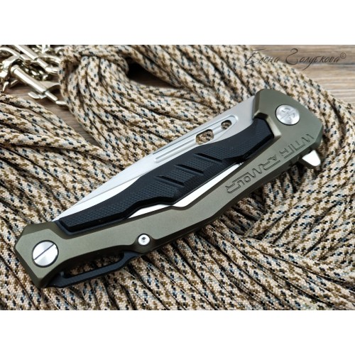 Нож рисовали американские дизайнеры, получилось неплохо, рукоять выглядит довольно футуристично. Она выполнена из алюминия Hard Alum (дюралюминий).