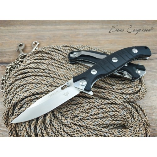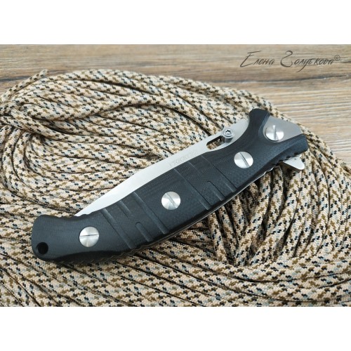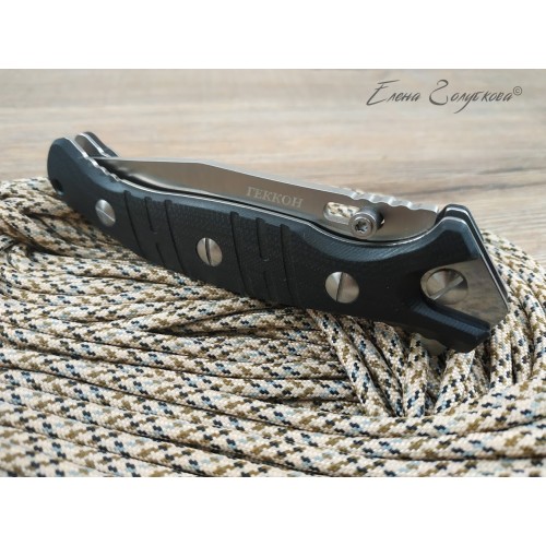 Геккон - универсальный тактический нож. Достаточно лишь взять его в руку, и уже не хочется расставаться. Клинок из твердой стали надежен и эффективен, а кроме того имеет характерный, запоминающийся вид благодаря регулируемому шпеньку. Эту деталь по желанию можно фиксировать в специальной прорези или вообще снять. Рукоять из высокопрочного материала G10 надежна, анатомически выверена, она будто становится частью ладони. Клипса позволяет удобно крепить нож в кармане. Также имеется отверстие для темляка.
