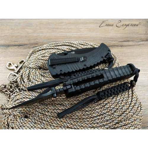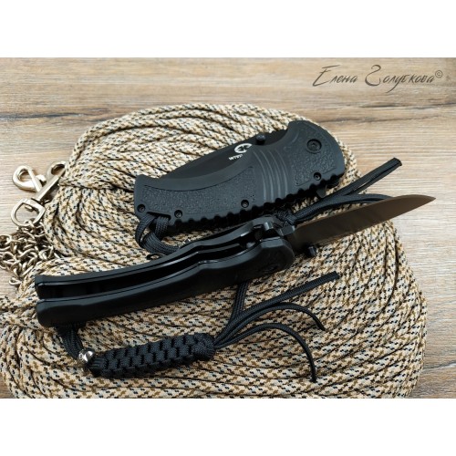 Складник Black boy - реально мужской нож. Элегантный и совершенный одновременно. Очень прочная ручка из современного прорезиненного материала, сразу же бросается в глаза и дает возможность почувствовать полную силу ножа. Лезвие из высокопрочной нержавеющей стали 440C прекрасно сочетается с дизайном ручки и не оставляет равнодушным никого. Поставляется с ремешком для паракода и темляком. В комплект также входит чехол из нейлона.