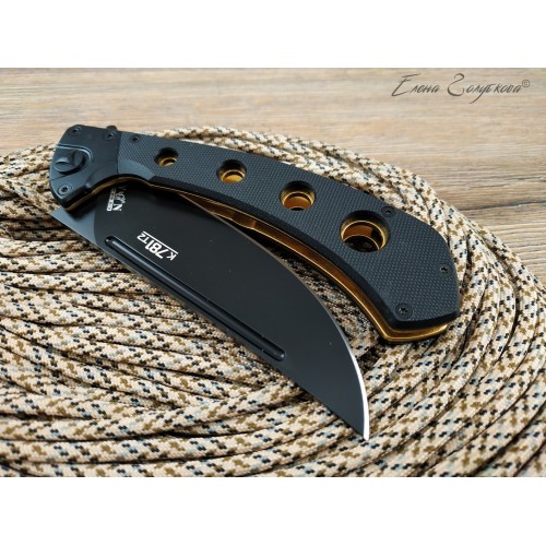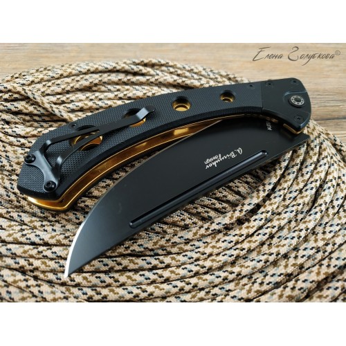 Складная версия этнического ножа пчак, пришедшего к нам из Средней Азии. Широкий мощный клинок обладает всей функциональностью нескладного ножа, он прекрасно режет и колет. Эргономичная рукоять из прочного материала G10 выдерживает существенные нагрузки, снабжена простым и надежным замком Liner-Lock. Восток может выполнять роль как ножа «на каждый день», так и походного инструмента. Дизайн разработан А. Бирюковым.