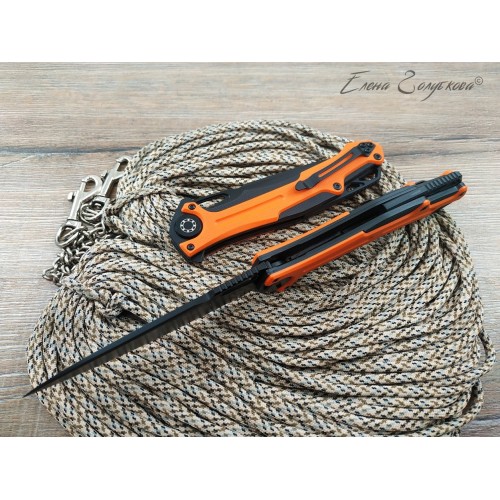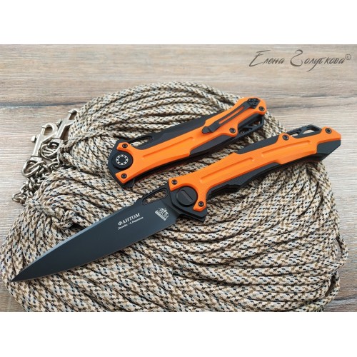 «Фантом» стал развитием идеи, он сам по себе столь же удобен, компактен и маневренен, однако клинок стал длиннее на целый сантиметр! Осевой узел выполнен на подшипниках, благодаря этому нож с легкостью открывается одной рукой. Двумя способами, по выбору владельца - флиппером или при помощи отверстия на клинке.