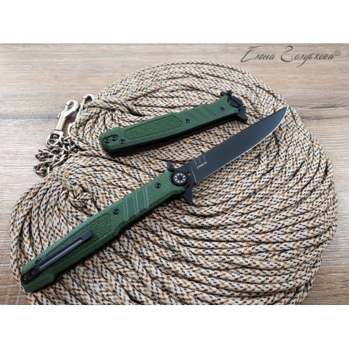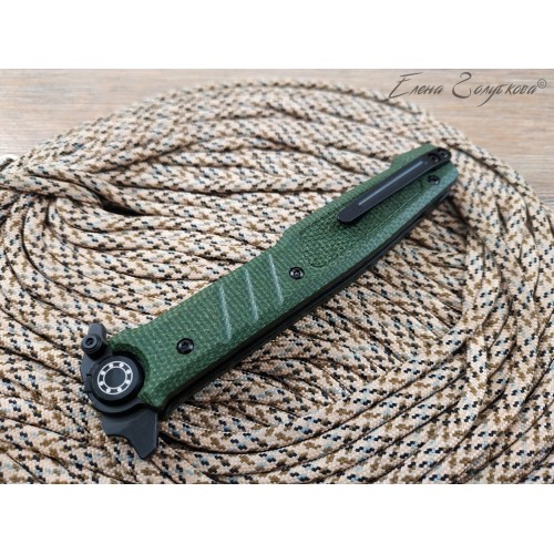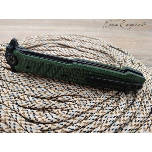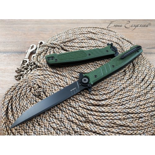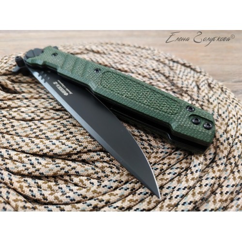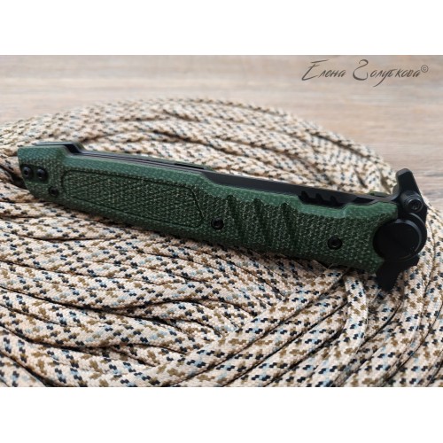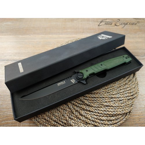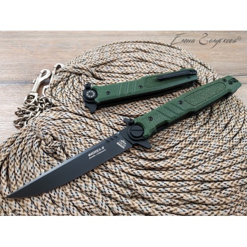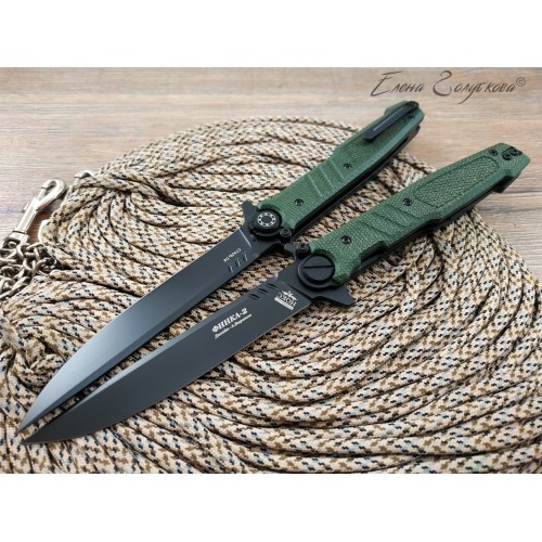 Складной нож Финка 2 Black 349-700106 - это продолжением серии складных ножей, прообразом которым является тактическая Финка Т. Длинный эффективный клинок изящно переходит в двустороннюю гарду. При этом нижняя ветвь упора исполняет функцию "флиппера", а верхняя одновременно является "вэйвом", при помощи которого нож легко открывается при извлечении из кармана. Накладки из высокопрочной микарты обеспечивают надёжный комфортный хват. И не забудем уникальную особенность новой "Финки" - инновационно вписанный в рукоять предохранитель "Lawks", надёжно уберегающий от самопроизвольного закрытия клинка. Предохранитель не подвержен силовой нагрузке во время работы и страхует замок от случайного воздействия ладонью или пальцами при определённом хвате. Финка 2 - это нож, который совмещает в себе классику и модерн. Ваш надёжный помощник в любой ситуации.