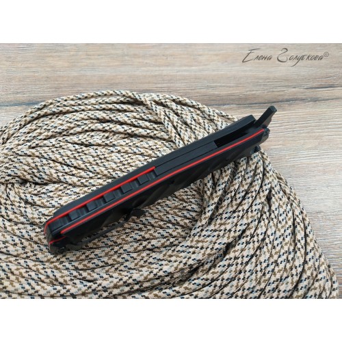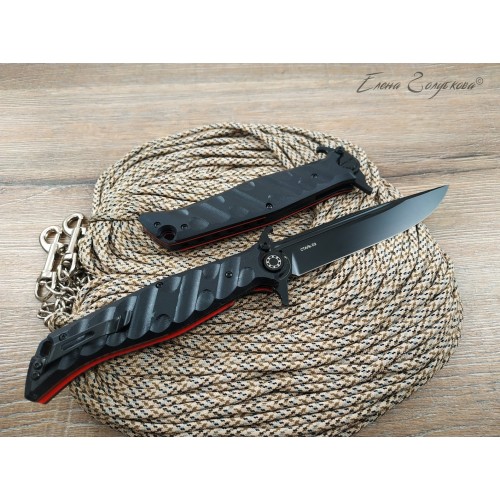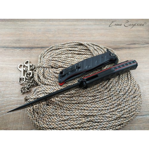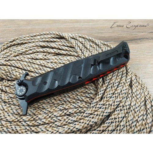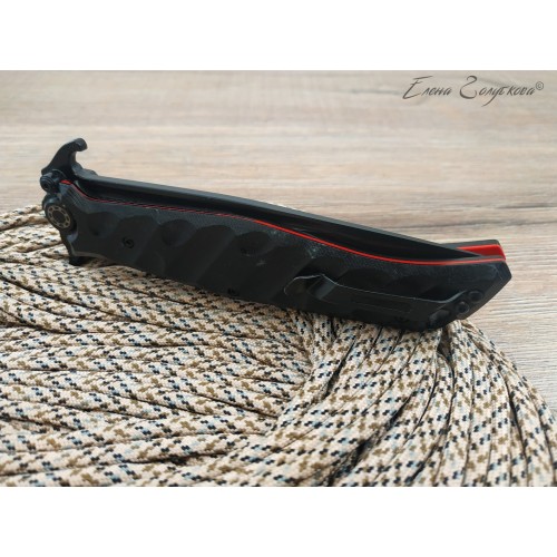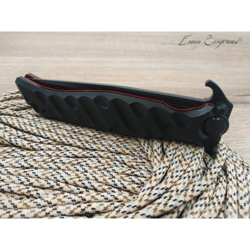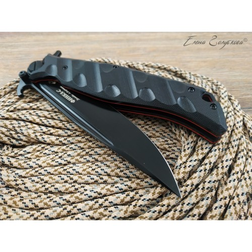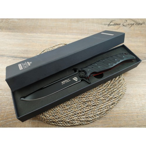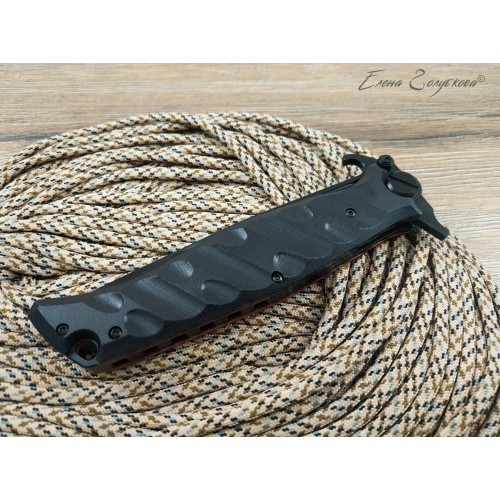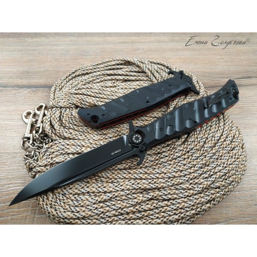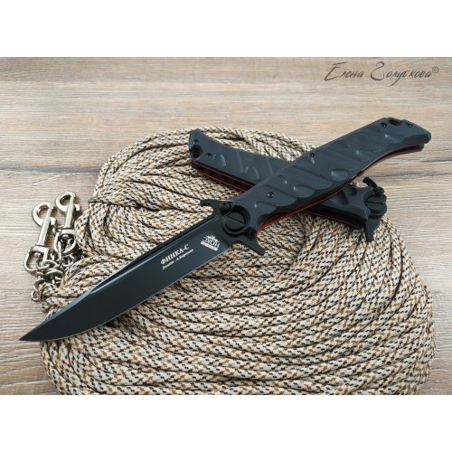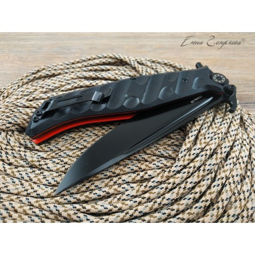 Отличительными особенностями данного варианта Финки С является керамический двухрядный подшипник и стойкое черное покрытие на основе титана. В остальном нож остался без изменений. Длинный эффективный клинок изящно переходит в двустороннюю гарду. При этом нижняя ветвь упора исполняет функцию «флиппера», а верхняя одновременно является «вэйвом», при помощи которого нож легко открывается при извлечении из кармана. Накладки из высокопрочного G10 обеспечивают надежный, комфортный хват. И не забудем уникальную особенность новой Финки - инновационно вписанный в рукоять предохранитель типа «Lawks», надежно уберегающий от самопроизвольного закрытия клинка. Финка С - это нож, который совмещает в себе классику и модерн, ваш надежный помощник в любой ситуации.