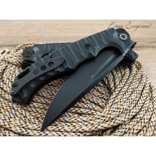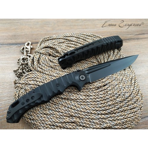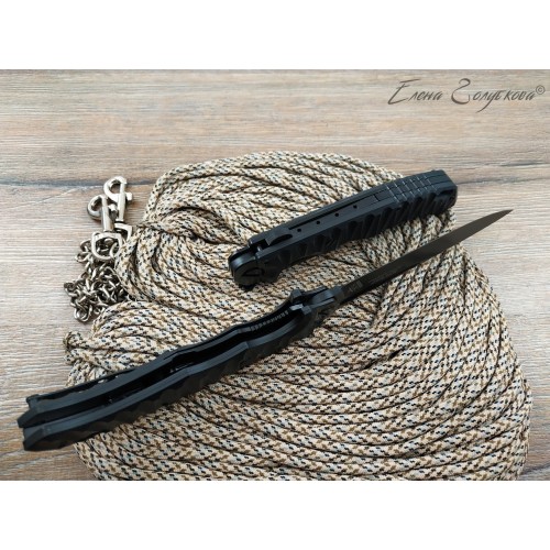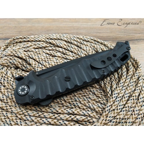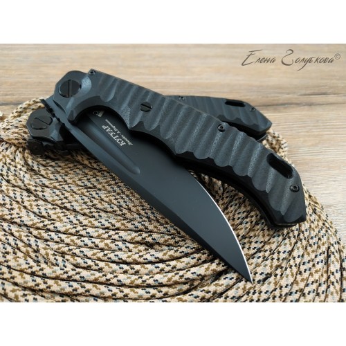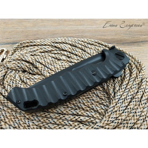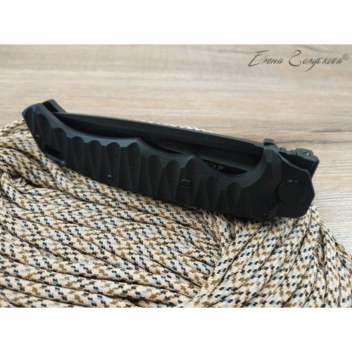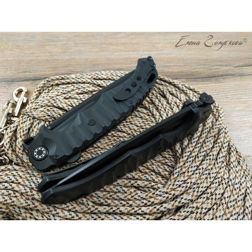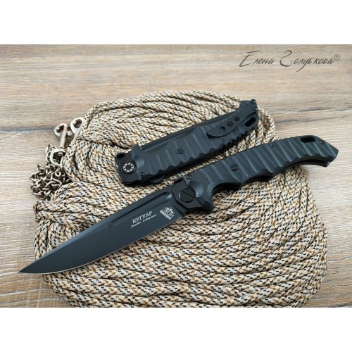 Нож Кугуар С Black НОКС теперь в новой расцветке - клинок, больстер, рукоять, вины и клипса по многочисленным просьбам приобрели благородный черный цвет. Кугуар специально спроектирован и создан как складной нож с потенциалом и функциональностью нескладного и имеет среди складников практически рекордное соотношение длины клинка 121,5 мм к общей длине 260 мм, которое еще больше подчеркнуто дополнительным выносом основной оси вперед к переднему краю рукояти, просчитанной эргономической формы с накладками из сверхпрочного материала G10, с двумя подпальцевыми выемками и трехмерным рельефом типа «токсик», гарантирующей надежное удержание даже в мокрой руке и впечатляющее удобство самых разнообразных хватов. Однако это не всё. Перед Вами новая версия, она наделена уникальной особенностью - снабжена толкателем, который не имеет аналогов в мире ножевого дизайна. Нажатие на специальный выступ-толкатель обеспечивает открытие с минимальными усилиями. Впрочем, ценители классики могут открыть крепкий хищный клинок из современной легированной стали D2, обладающей превосходными режущими свойствами и твердость 60–61 HRC как прежде, с помощью шестиугольной таблетки (плоского шпенька) в основании клинка. Оснащен пружинной клипсой для удобства ношения на кармане. Кугуар - настоящий мужской нож. Дизайн разработан Александром Бирюковым.