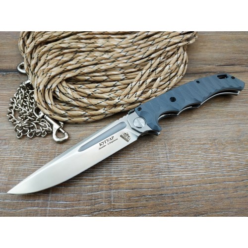 Складной нож Кугуар С с инерционным открыванием от компании Нокс надёжный, мощный друг. Осевой узел ножа собран на подшипниках, обработка клинка – сатинирование. Удобная рукоять с накладками из высокопрочного пластика G10 серого цвета с трехмерным рельефом поверхности обеспечивают надежный и комфортный хват и цепкое удержание ножа. Крепкий хищный клинок из современной легированной стали D2 обладает превосходными режущими свойствами. Дизайн разработан Александром Бирюковым.