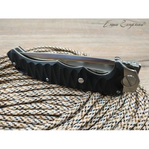 Накладки рукояти черного цвета выполнены из стеклотекстолита G10 - прочного износостойкого материала.