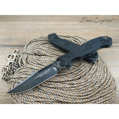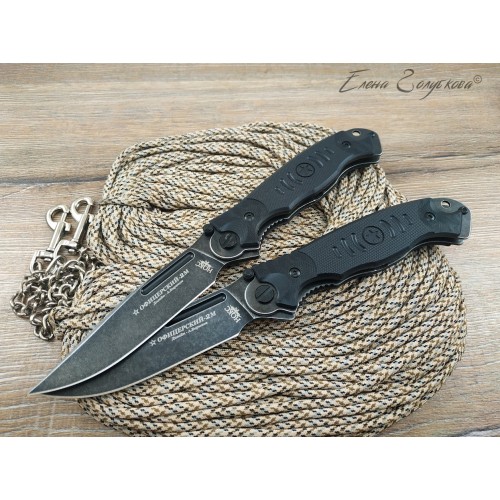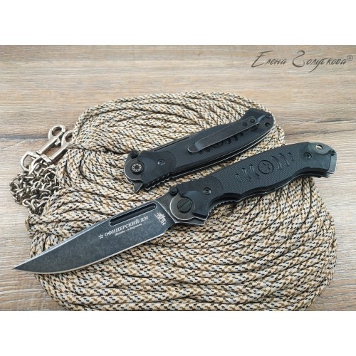 Офицерский-2М - универсальный тактический нож. Клинок из инструментальной стали сочетает твердость и удобство заточки. Он прекрасно режет, эффективно колет и с легкостью открывается двумя способами - при помощи флиппера, а также двустороннего шпенька. Рукоять с объемными накладками из материала G10 сочетает удобство и прочность. Офицерский-2М - надежно послужит в любой ситуации. Дизайн разработан Александром Бирюковым.