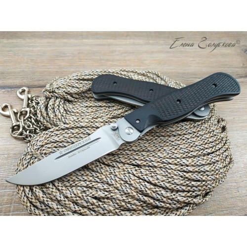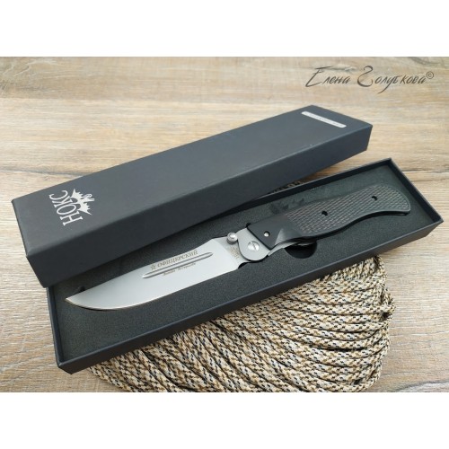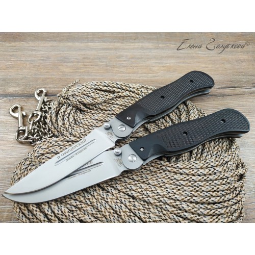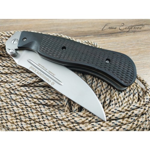 Офицерский - складной тактический нож, классическая модель, которая пользуется неизменной популярностью. Клинок выполнен из высокопрочной стали с антибликовой обработкой поверхности. Рукоять эргономичной формы с оружейной насечкой. Нож имеет предохранитель, надежно фиксирующий клинок. За много лет эксплуатации Офицерский отлично зарекомендовал себя как надежный инструмент, превосходно выполняющий функции бытового, охотничьего и боевого ножа. Дизайн разработан Игорем Скрылевым.
